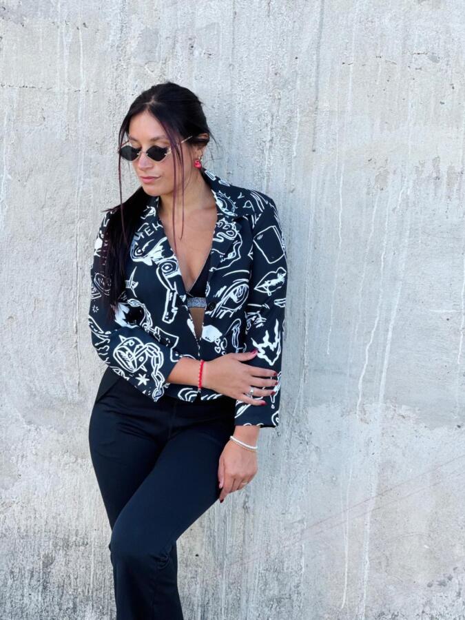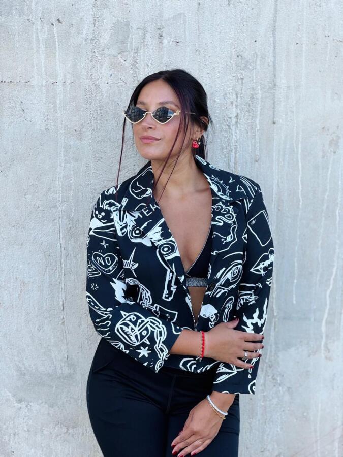 Blazer confeccionado en tela crepe sastrero.
