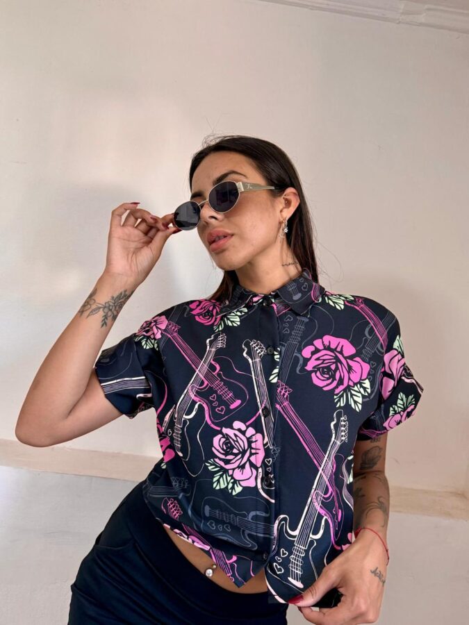 Camisa de confección corta, talle único. Realizada en tela tipo creppe. Full stamp